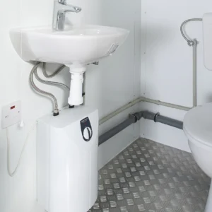 Measuring 8 feet by 5 feet, this double mains toilet offers ample space, ensuring a comfortable experience for users. Its intelligently designed layout facilitates ease of movement within the unit while maintaining privacy and hygiene standards. The spacious design is ideal for accommodating higher foot traffic, making it a perfect fit for shared usage scenarios where reliability and user satisfaction are paramount.