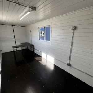 Elevate your space with our brand-new, premium prefabricated building, designed to meet a variety of needs. Whether you’re looking for a compact living area, a cozy office, a hobby room, or extra storage, this sturdy metal structure delivers both durability and versatility. 20ft 20’ Slate Gray Shiplap 120V Shipping Container Office Minisplit